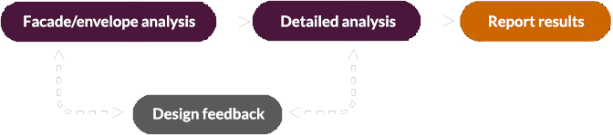 A façade analysis is a great way to initially optimise both building orientation and window placement for your proposed design. It is also a useful way to measure the initial impact on any neighbouring buildings.