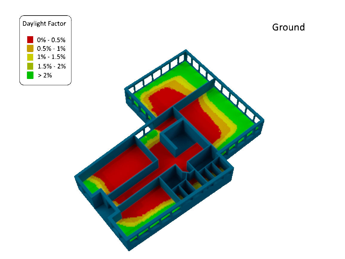 Most calculations can be exported as an Excel file tabulating and summarising the results. Waldram Diagrams for tests such as VSC, APSH and SE provide the user with visual outputs. Room calculations typically produce contour images demonstrating the distribution of light which can be presented within Revit.