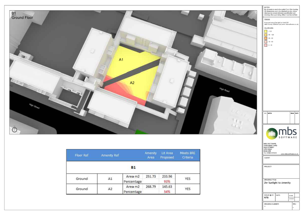 Sometimes required as part of the planning process, sunlight to amenity measures the amount of sunlight an amenity (e.g. Gardens and Playgrounds) receives on a typical date, usually March 21st.