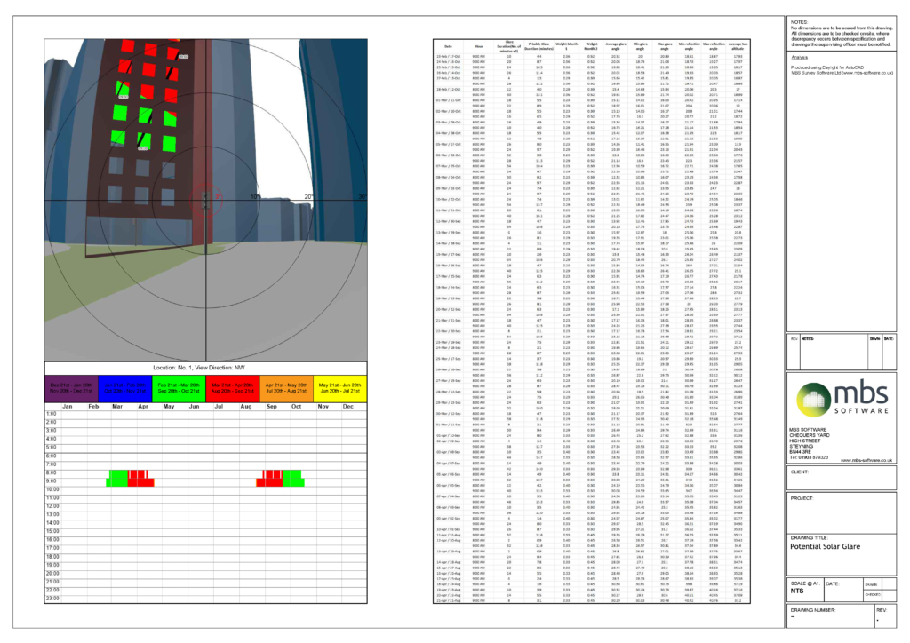 Reflected sunlight from the proposal to passing trains or motorists can cause disability glare. Potential Solar Glare highlights the likely date and time solar glare may occur.
