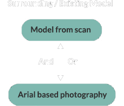 Initially a Context 3d Model can be obtained which is created from aerial photogrammetry. If a more accurate site survey is required (i.e. For ROL purposes) then a 3d Laser Scan can be carried out in which an accurate 3d model can be produced from the scan data.