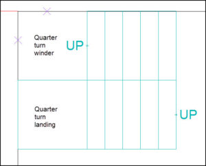 Scenario: In the Garden room we are going to add a staircase with 2 straight sections, a quarter turn landing and winder.